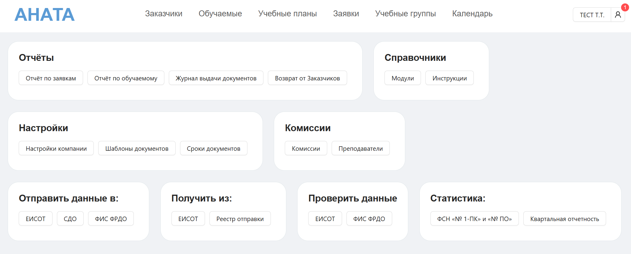 В системе "АНАТА" предустановлены и настроены следующие направления: